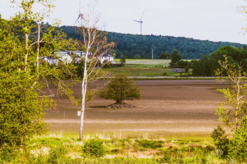 Wir staunten nicht schlecht, als wir wie gewohnt an unserem Lieblingsteich, dem Obermooser See, mit Hund unsere Runde drehen wollten. Schon von der Straße aus erkennt man statt einer spiegelnden Wasseroberfläche und regen Vogelaktivitäten, nur eine riesige braune Fläche mit Kratern.