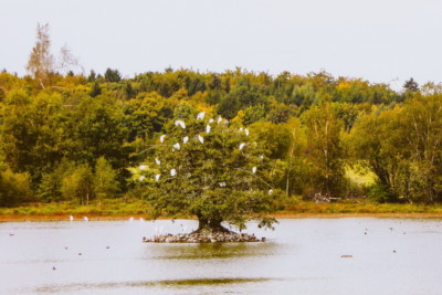 Eine Augenweide sind auch die vielen Silberreiher, die sich meist am Nordufer aufhalten. Dort haben sie sich als Lieblingsplatz einen Baum auf einer sehr kleinen Seeinsel erobert, auf dessen Krone Sie gerne verweilen. Ein herrliches Bild.